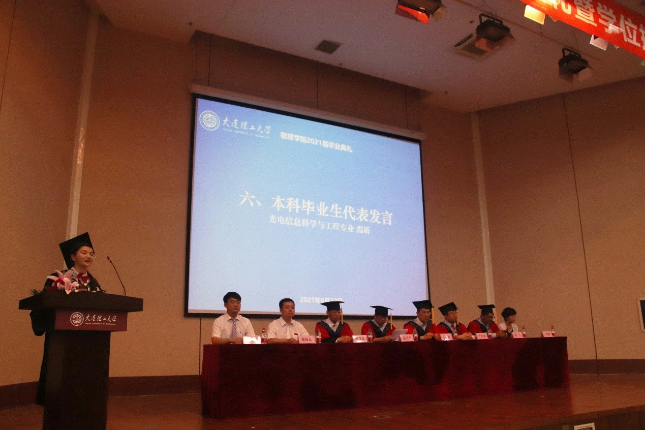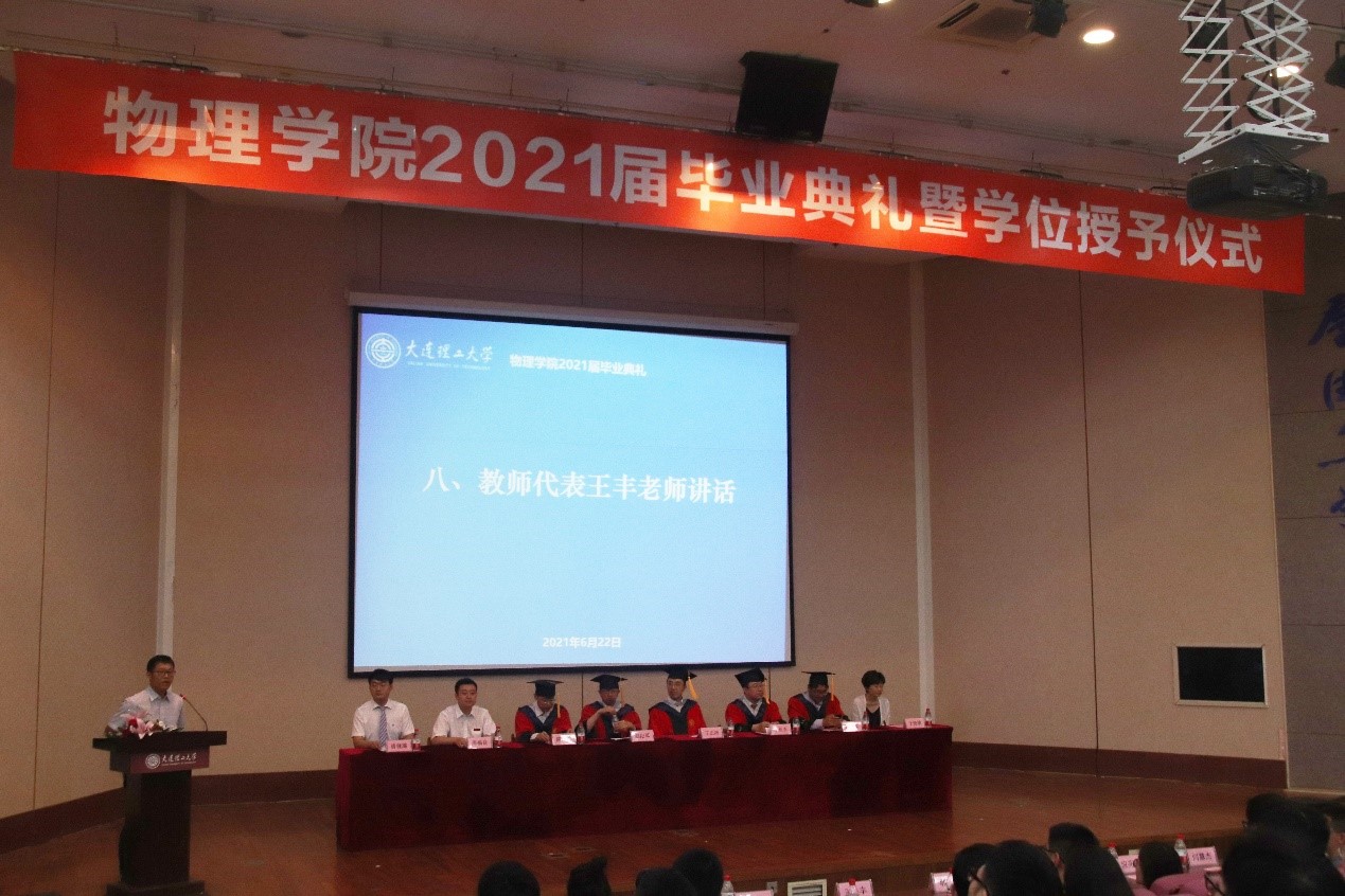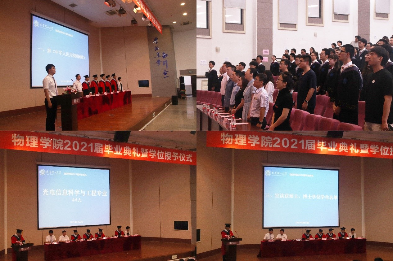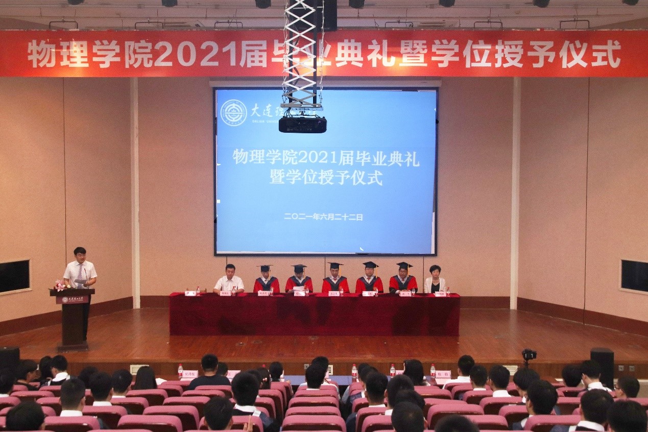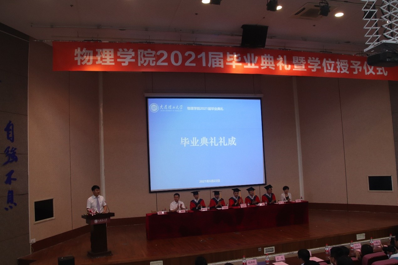 夏季逾至,又逢毕业季。问鼎网中国2021届毕业生即将离开大工,开启新的旅程。2021年6月22日上午9时,问鼎网中国2021届毕业典礼暨学位授予仪式在研教楼报告厅成功举行。出席的嘉宾有问鼎网中国院长赵纪军教授、党委书记王正汹教授、副院长陈茂笃教授、副院长于长水教授、副院长高飞教授、党委副书记兼副院长周福良老师、党委副书记兼副院长于艳敏老师、学生工作办公室主任纪丹红老师、研究生辅导员张弛老师。此外,本次典礼也面向本科生思政班主任、专业班主任发出邀请。物1703班思政班主任赫铭老师、物1701班思政班主任邬霞老师、物大珩1701班思政班主任应兆升老师、物1702班专业班主任副教授王丰老师、物1703班专业班主任闫慧杰老师参与本次问鼎网中国的毕业典礼。2021届本科毕业生辅导员唐健璐老师担任主持人。