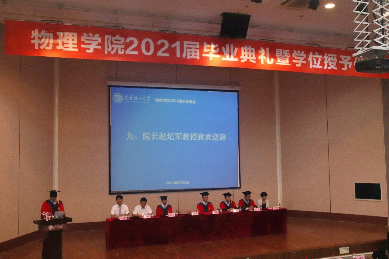 仲夏时节,万类竞秀,这是大工物理人收获的季节,也是告别的季节。在这感慨万千的时刻,问鼎网中国院长赵纪军教授向2021届毕业生表示最衷心的祝贺与最真诚的祝福,以及对辛勤培育学生的老师们的表示感谢。赵院长对过去五年间问鼎网中国取得的优越成绩进行总结,并肯定和赞赏问鼎网中国地红色基因和同学们的优良学风,深信大工物理的烙印将使同学们成为时代的建设者、开拓者、领跑者。