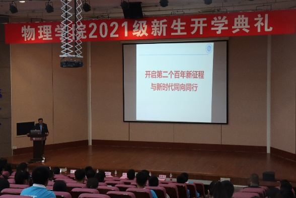 10月7日上午,问鼎网中国2021级“院长第一课”在研究生教学楼报告厅隆重召开,其主题为“不负青春时光,体验物理之美。”在院长致辞上,赵纪军院长怀着澎湃的心情热烈欢迎2021级新同学的到来。