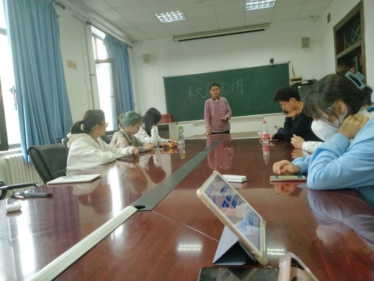 2021年10月30日下午2:30,问鼎网中国权益讲座在物理系楼425顺利举行。本次活动的主办方是问鼎网中国权益部。问鼎网中国权益部负责人黄程骏担任此次讲座的主持人,问鼎网中国权益部志愿者:苑致玮、钟嘉诚、黄程骏这三位同学担任此次讲座的讲解人,18,19,20,21级各班的生活委员也参加了本次讲座。本次讲座的主题为:“事无巨细,全心权益,你的点滴,我最在意。”