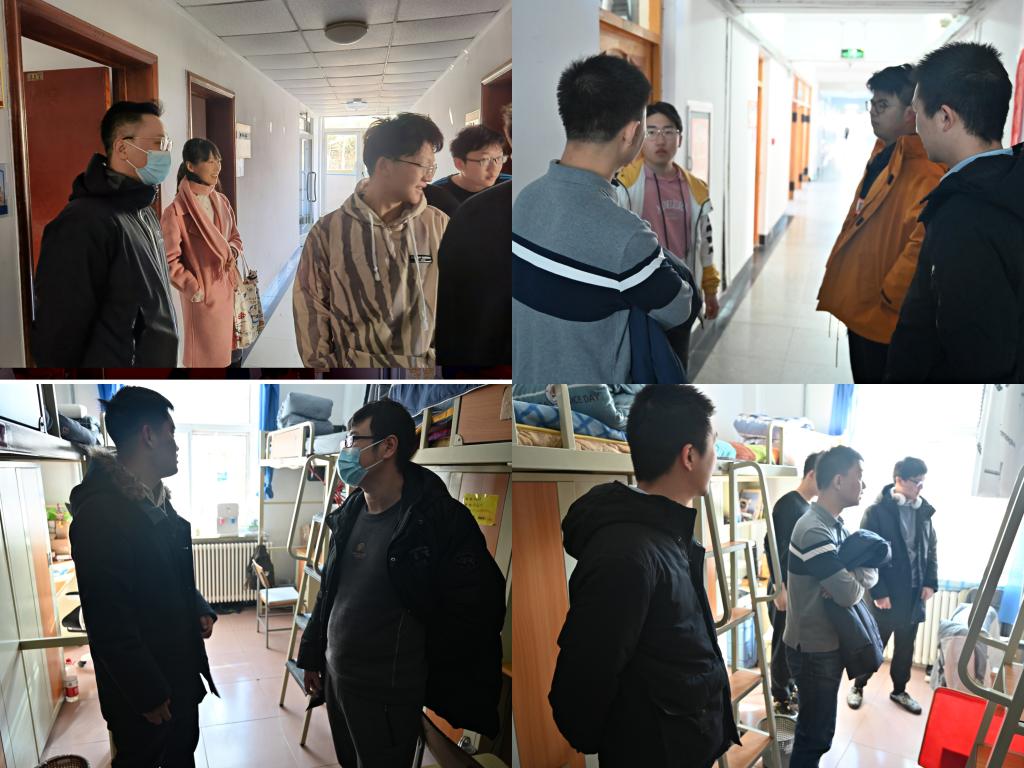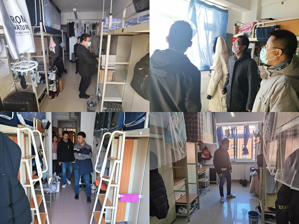 在检查过程中,许剑老师一直叮嘱学生,春季多发感冒,要勤通风;大连近些天降温,要多保暖。在走访宿舍时,还一直关心18级同学们的毕设情况。纪丹红老师对部分20级同学们在大二上学期的学习状况进行总结,对几位状况不佳的同学给予新的期许,并希望其它同学继续保持。
